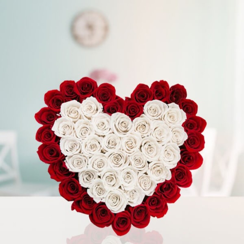 Send your warm and heartiest wishes to your special ones by sending our delicate red and white roses heart consists of 25 fresh, full-bloomed and hand-picked roses straight from the garden.