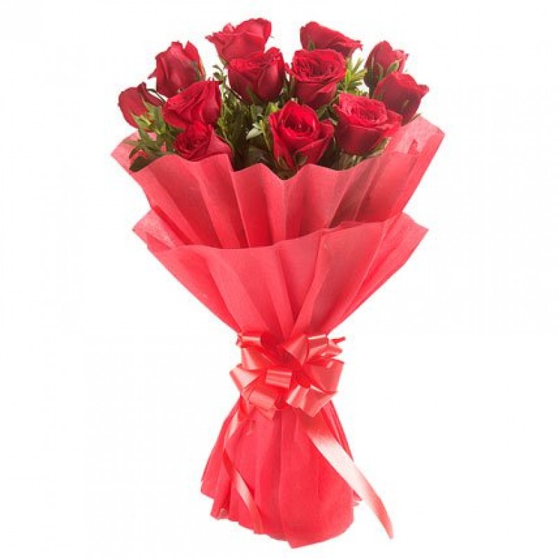 Product Description: Hand Held 10 Red Roses Bunch With Seasonal Fillers In Paper Wrapping And Hand Tied Smartly With A Ribbion